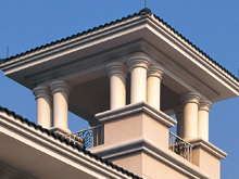 EPS構件以高強度阻燃型聚苯乙烯為基體,耐堿玻璃纖維網格布作為中間層,外層由無機抗老化聚合物乳液復合成型。電腦控制線切割,尺寸精確;產品自重輕,安全性高;徹底解決熱橋問題;安裝簡便,易搬運。上世紀80年代率先開始在歐美等國廣泛應用,是傳統GRC構件的劃時代升級產品。主要適用于歐式風格小區、酒店及商業街等建筑二樓以上檐角線、腰線及庭柱等部位。